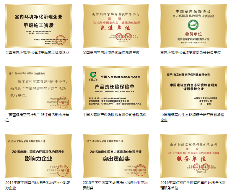 品牌不僅被央視納為宣傳推薦品牌,更是在2012年獲得了中國(guó)室內(nèi)環(huán)保凈化產(chǎn)品十佳品牌,同時(shí),創(chuàng)綠家被評(píng)為中國(guó)中輕質(zhì)量信譽(yù)雙保證重點(diǎn)推薦單位,室內(nèi)環(huán)境檢驗(yàn)治理達(dá)標(biāo)單位,并擁有室內(nèi)環(huán)境污染治理證書(shū),被評(píng)為全國(guó)環(huán)保行業(yè)質(zhì)量放心、消費(fèi)者***品牌!