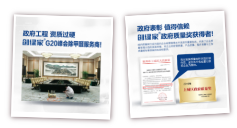 不僅如此,公司專業(yè)從事室內(nèi)環(huán)境健康領(lǐng)域近十年,潛心研究室內(nèi)健康問題,把“創(chuàng)造綠色家庭,創(chuàng)造美好生活”的使命帶入千家萬戶。截止目前創(chuàng)綠家已治理大型工程10000+,家庭用戶100000+,是杭州G20峰會、第75屆世界種子大會、溫州龍灣國際機(jī)場空氣治理服務(wù)商,公司也是杭州市上城區(qū)政府質(zhì)量獎獲得者,得到了政府的認(rèn)可與表彰。