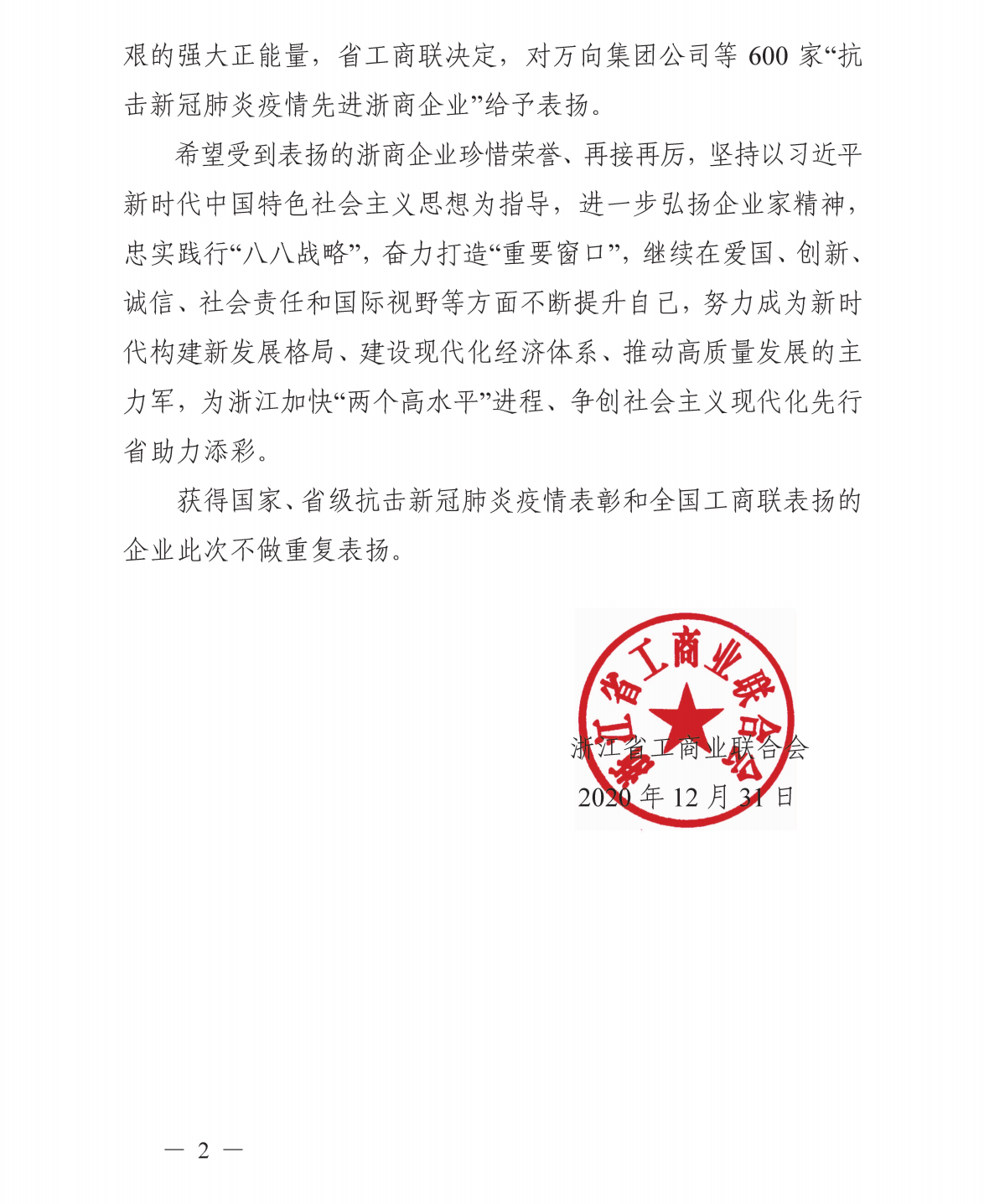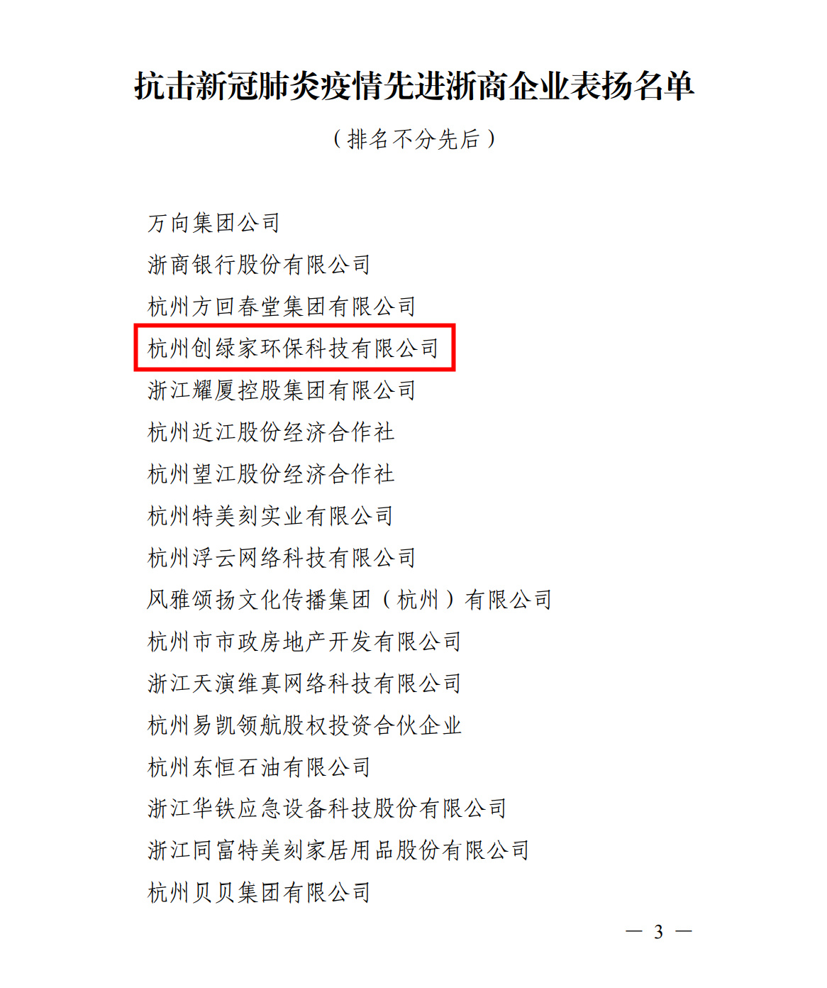 為大力弘揚在抗擊新冠肺炎疫情中形成的偉大精神,充分激發(fā)廣大浙商的責(zé)任感和使命感,近日,浙江省工商業(yè)聯(lián)合會發(fā)布了關(guān)于對抗擊新冠肺炎疫情做出優(yōu)異成績的先進浙商企業(yè)予以表揚的通報,杭州創(chuàng)綠家環(huán)??萍加邢薰颈辉u為“抗擊新冠肺炎疫情先進浙商企業(yè)”。